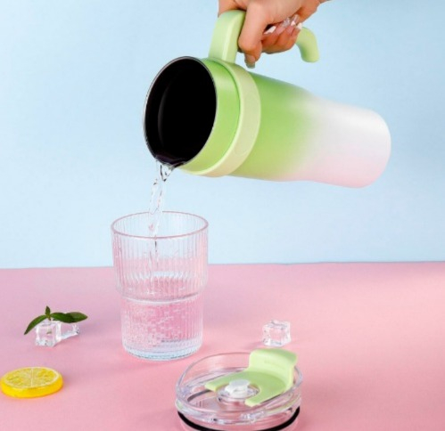 Enjoy your favorite beverages on the go with the 1.2L Large Capacity Stainless Steel Thermal Cup with Straw. Designed with premium stainless steel and double-wall insulation, this thermal cup helps keep drinks hot or cold for extended periods. The large 1.2-liter capacity ensures you stay hydrated throughout the day without frequent refills. It features a convenient drinking straw and secure lid for comfortable sipping at home, office, gym, or during travel. The sturdy handle and durable construction make it perfect for everyday use.