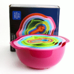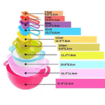 It’s composed of eight colors and is suitable for various kitchen tasks. The set includes four sizes of mixing bowls for multiple uses.