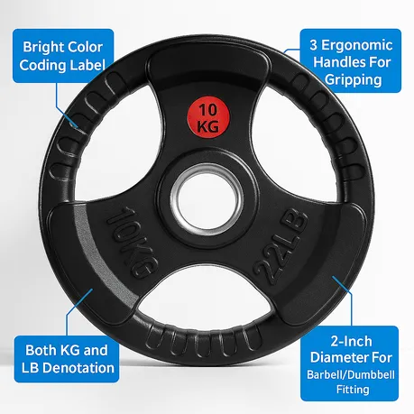 • 3-Hole Ergonomic Design: Provides secure and comfortable grip for lifting, carrying, and loading on dumbbells or bars.