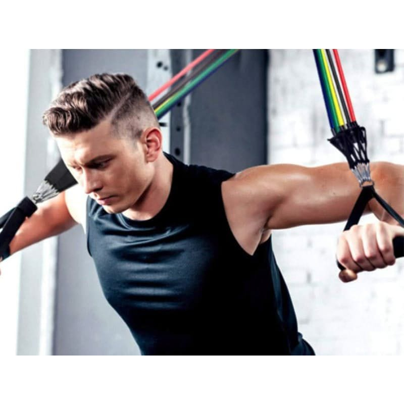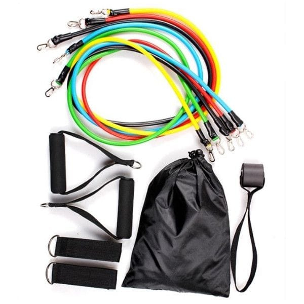 11 Piece Resistance Bands Kit – 5 color variant resistant tube bands.