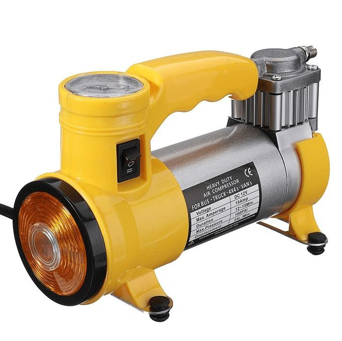 Key Features: This air compressor comes with 12V rated voltage and metallic body.