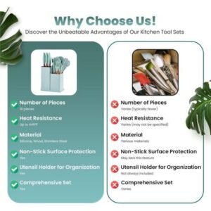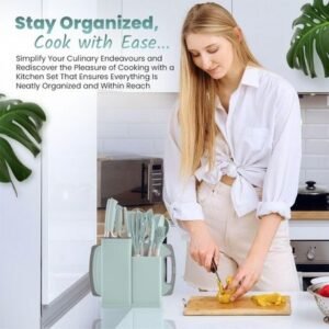 The cutlery set includes everything you need to cook effortlessly, fully meeting your daily cooking needs and keeping your kitchen organized and tidy.