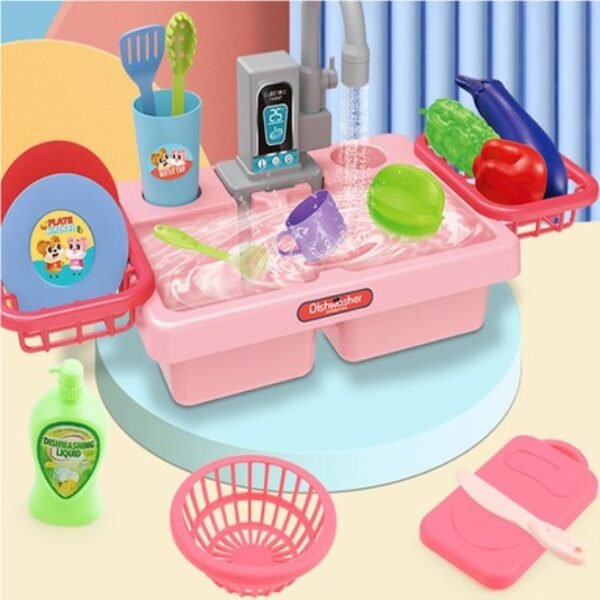 1 x 19 Pieces Kids Electric Dishwasher With Circulating Outflow Water