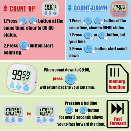 Large, Easy-to-Read LCD Display: See your time at a glance from across the kitchen.