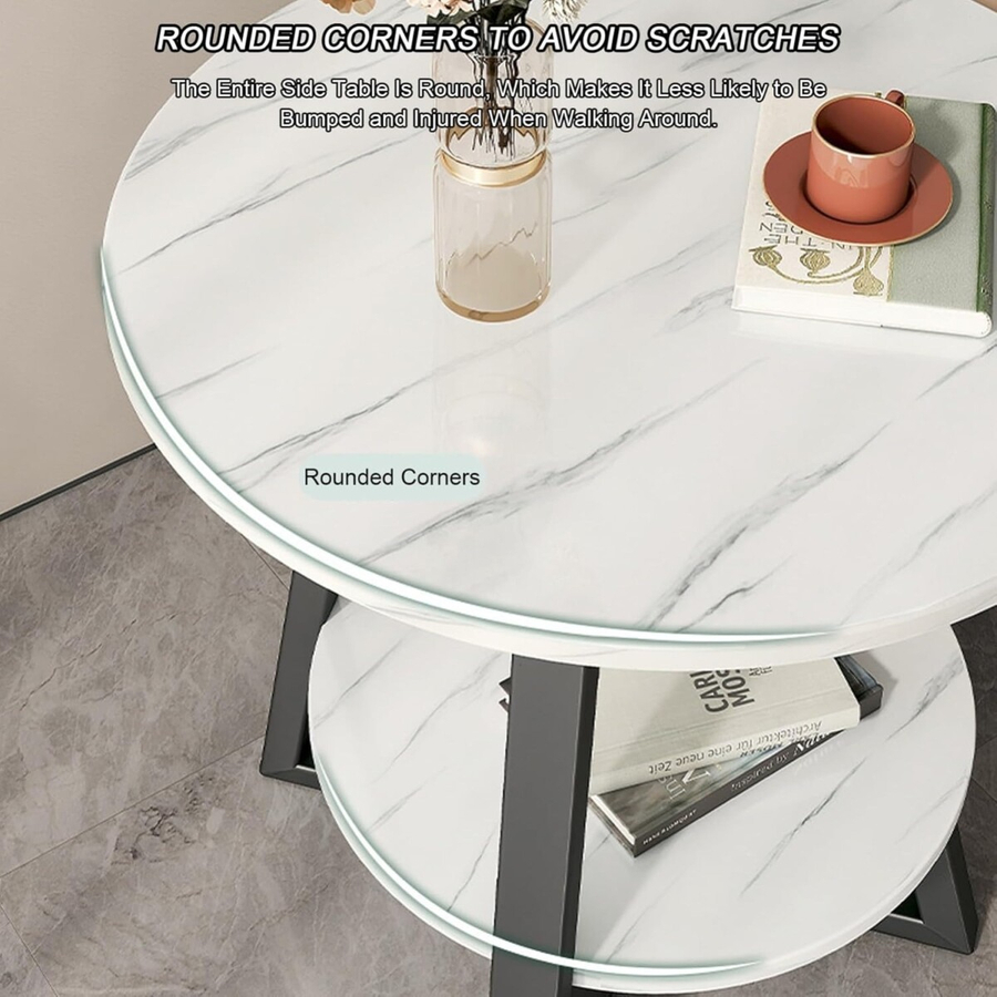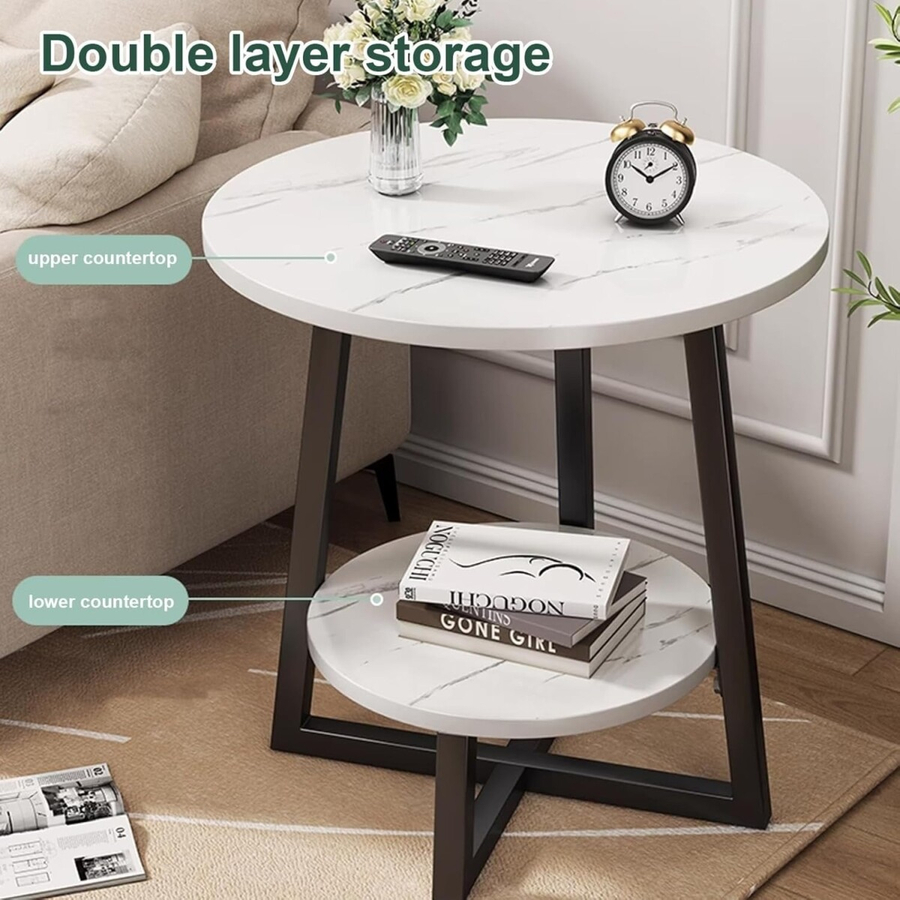 Elevate your living space with this stylish 2-tier round end table, where modern design meets practical function. With a clean silhouette, premium materials, and a compact footprint, this end table adds a touch of luxury and convenience to any room—whether used beside your sofa, bed, or in a reading corner.