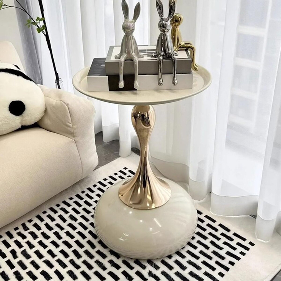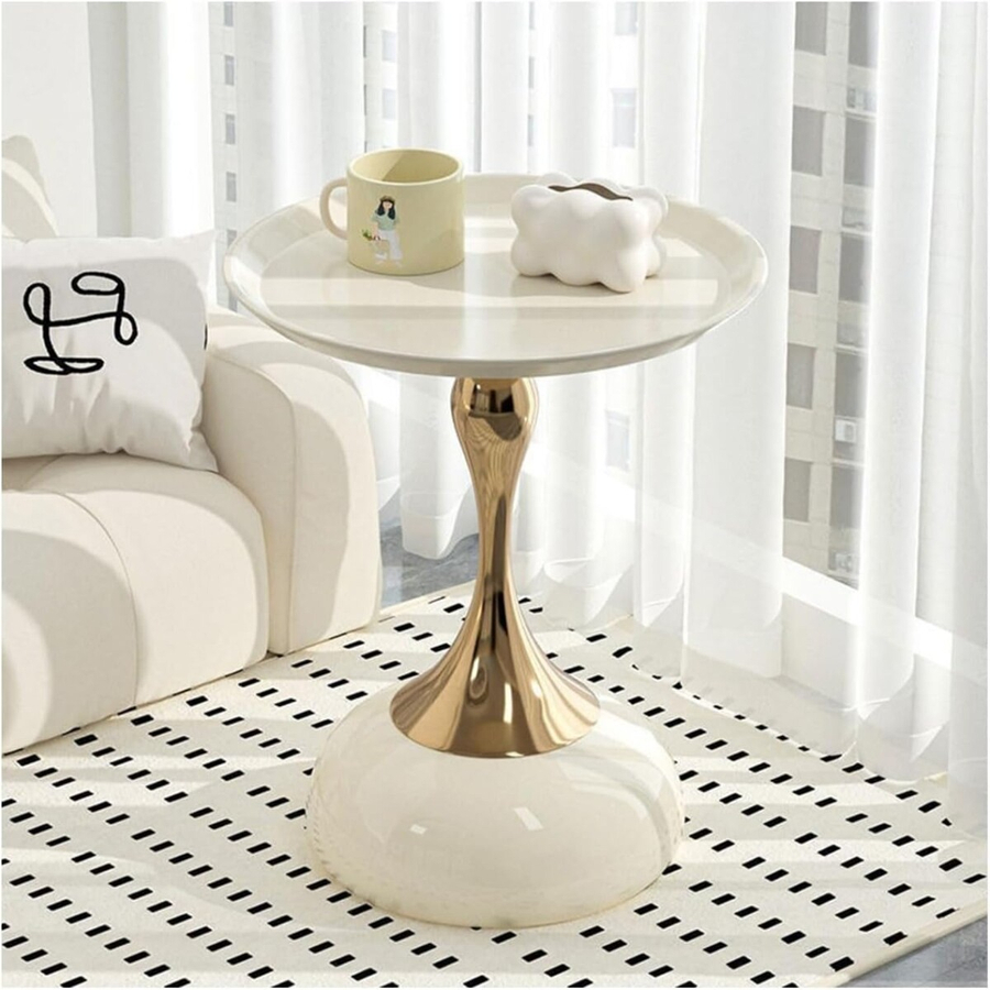 Elevate your space with this Modern Round Side Table, designed to blend contemporary elegance with everyday functionality. Featuring a smooth gloss white tabletop and a striking gold pedestal base, this accent table adds a touch of luxury to any living room, bedroom, or reading nook.