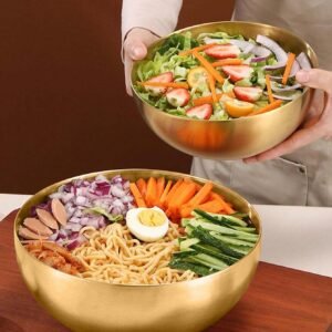 Introducing our stunning 28cm large gold serving bowl, perfect for adding a touch of elegance to your dining table. Crafted with high-quality materials, this bowl not only serves its functional purpose but also enhances your kitchen aesthetics.