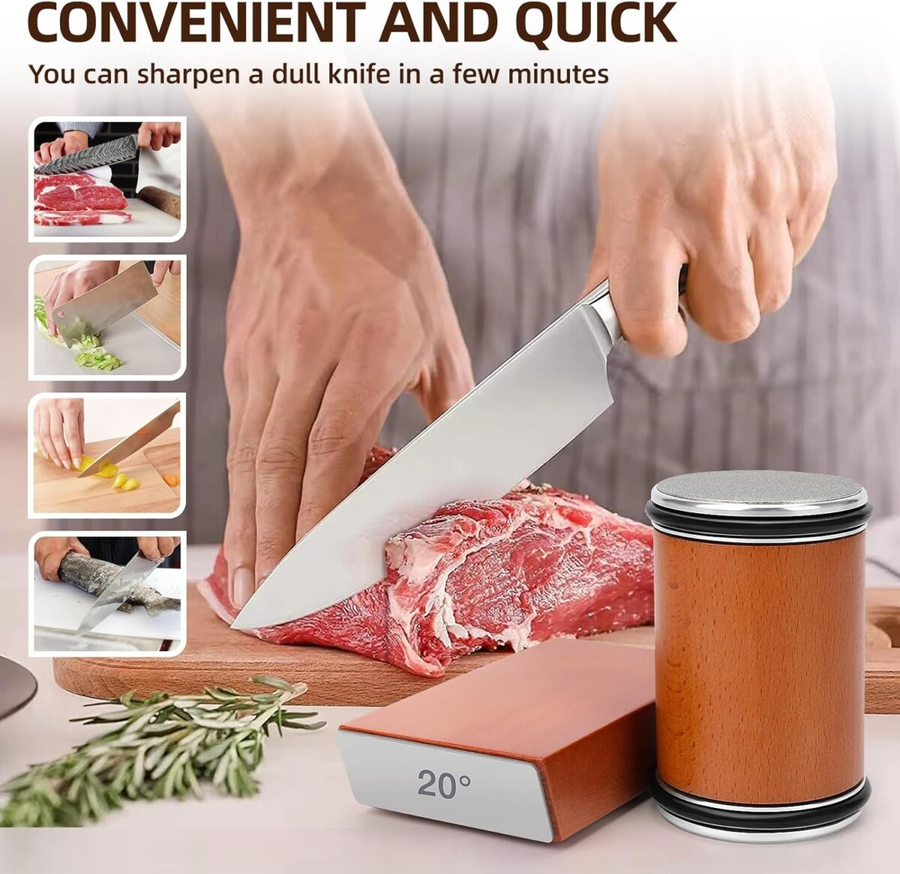 Maintain razor-sharp blades effortlessly with the Rolling Knife Sharpener Tool Kit, designed for safe, precise, and consistent sharpening. Featuring a rolling sharpening system and a stable magnetic base, this tool allows you to restore dull knives with professional results at home. Suitable for most kitchen knives, it offers controlled sharpening angles that help extend blade life while delivering a clean, sharp edge every time.