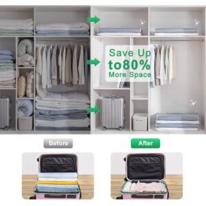 - space-saving and hygienic our vacuum storage bags can not only save you about 80% of storage space but also protect your clothes, bedding, etc. From mildew, dust, moisture, bacteria, odor, etc.
