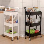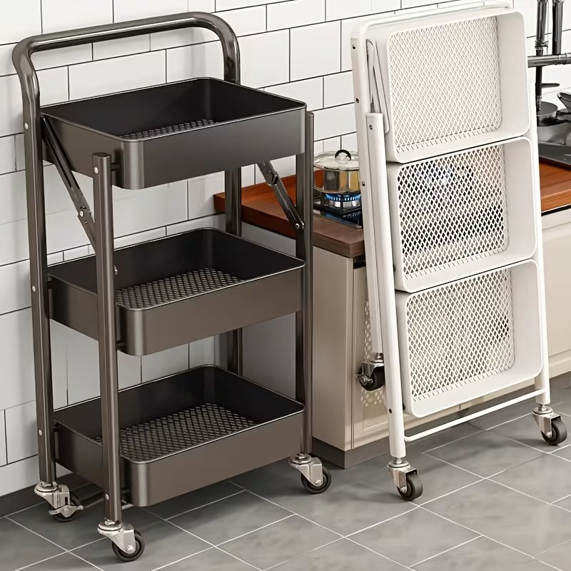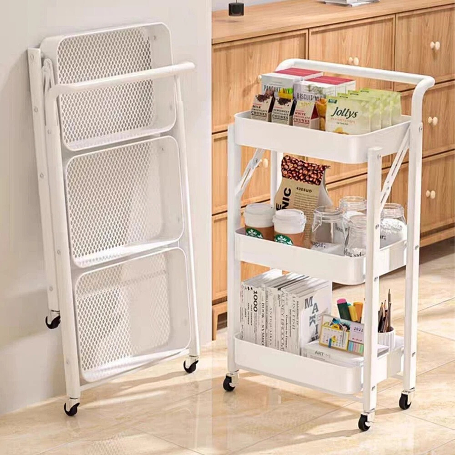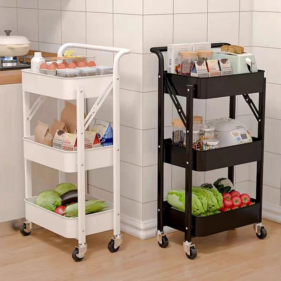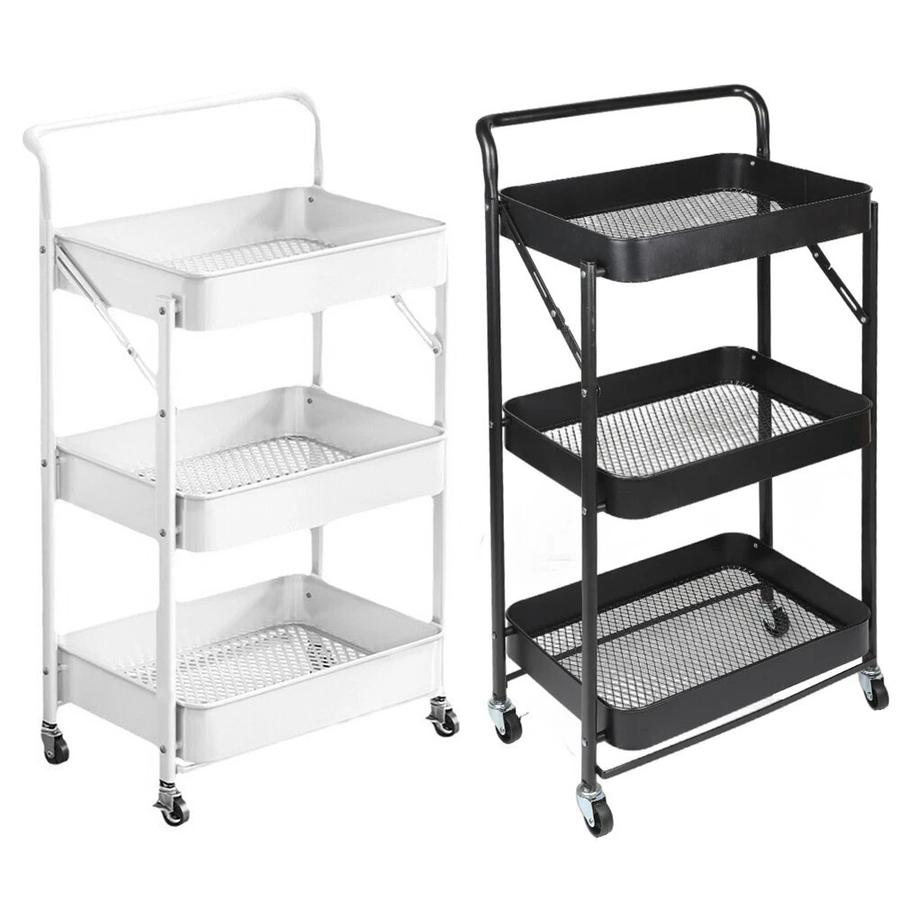 3 Tier Steel Kitchen Storage Rack Foldable With Wheels – Various Colors