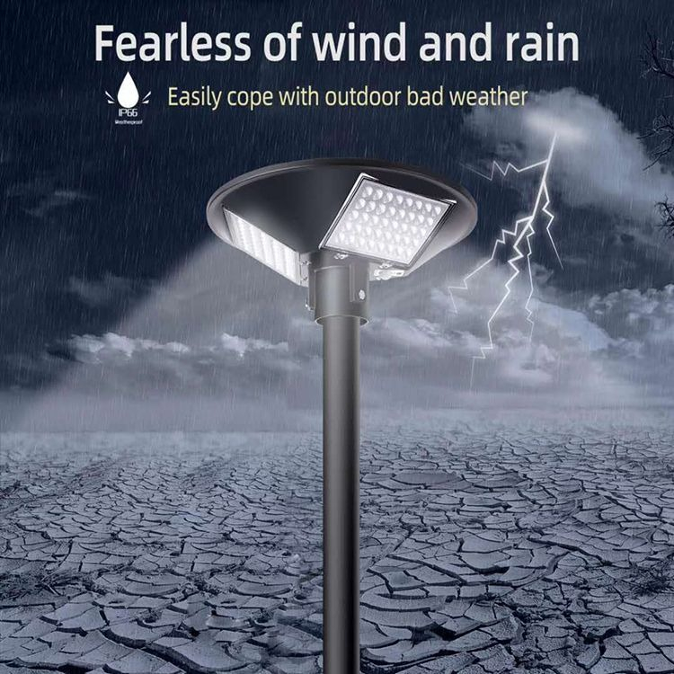 The built-in motion sensor enhances security by increasing brightness when movement is detected, while its remote-controlled settings allow easy customization. With a long-lasting lithium battery and IP65 waterproof rating, this solar street light performs consistently in rain, heat or cold.