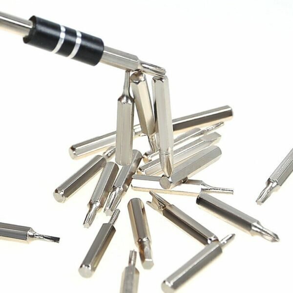 -1 handle, 1 tweezers, 30 different bits, stored in a special box, easy to carry