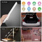 Wide Application: Wireless Rechargeable Motion Sensor LED Night Light can be used to light stairways, bathrooms, bedrooms, drawers, pantries, cellars, corridors, wardrobes, hallways, kitchens, cabinets, workshops, bookshelf, attics, headboards, trunks, garage, or any place when extra lighting needed.