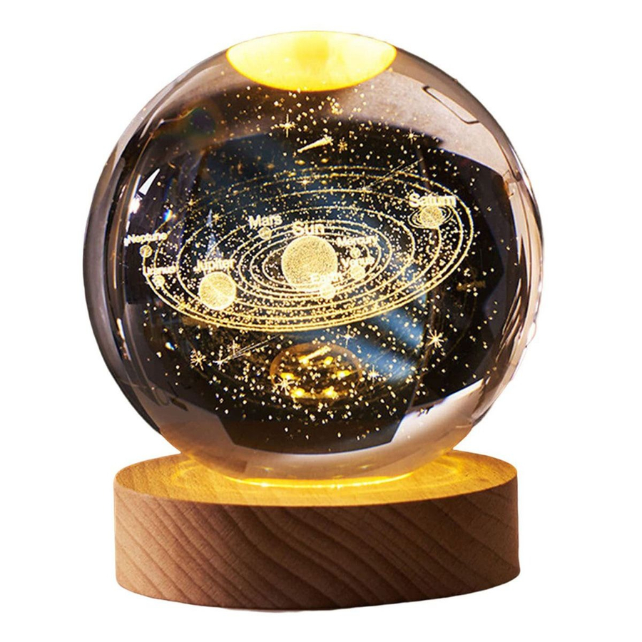 Perfect as a home décor accent, educational display, or unique gift, the crystal ball sits elegantly on an LED light base that enhances the intricate planetary design. When illuminated, the engraving becomes vivid and eye-catching, making it ideal for bedrooms, offices, study desks, and living rooms.