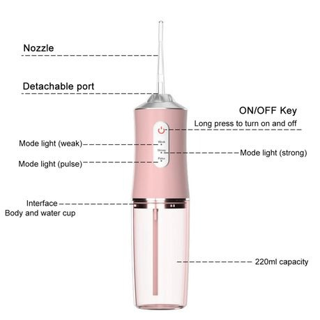 – The water jet toothpick is IPX7 full body waterproof and designed with a 220ml capacity water tank, which has a good lifespan and is convenient for daily use without a second fill needed;