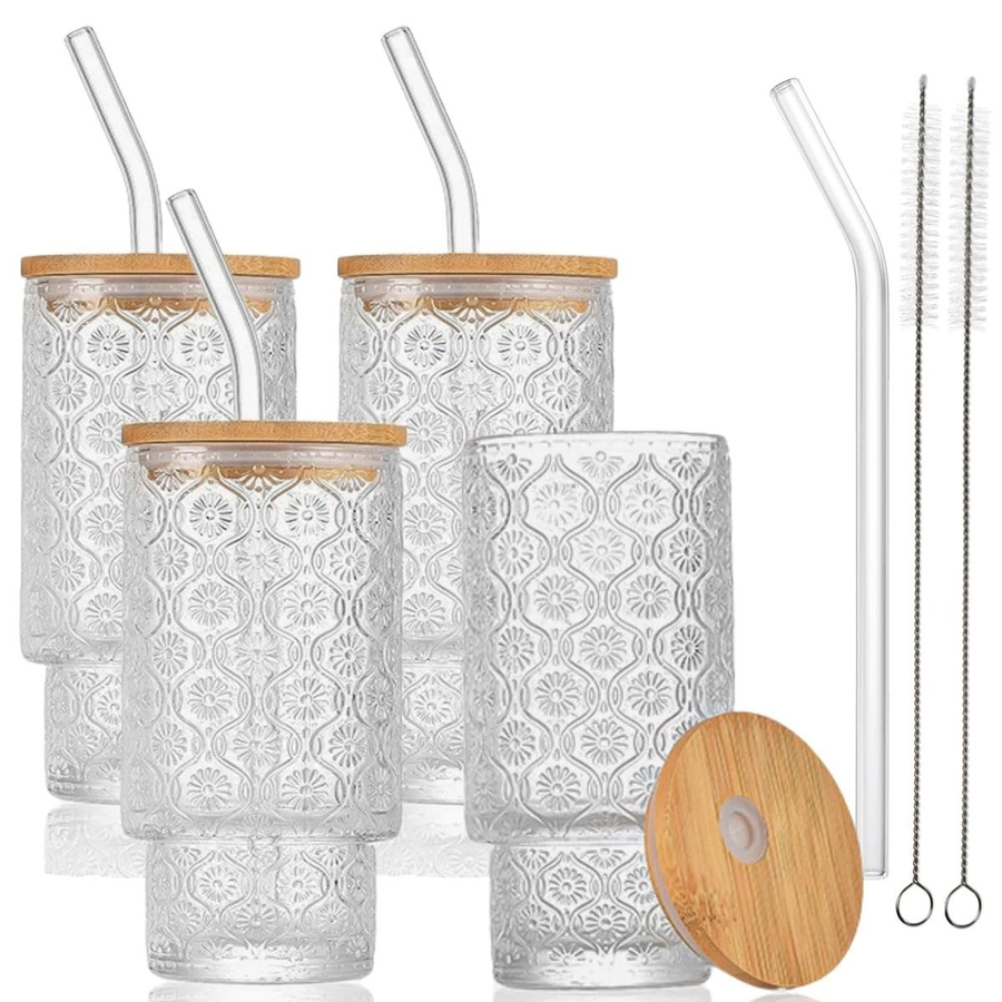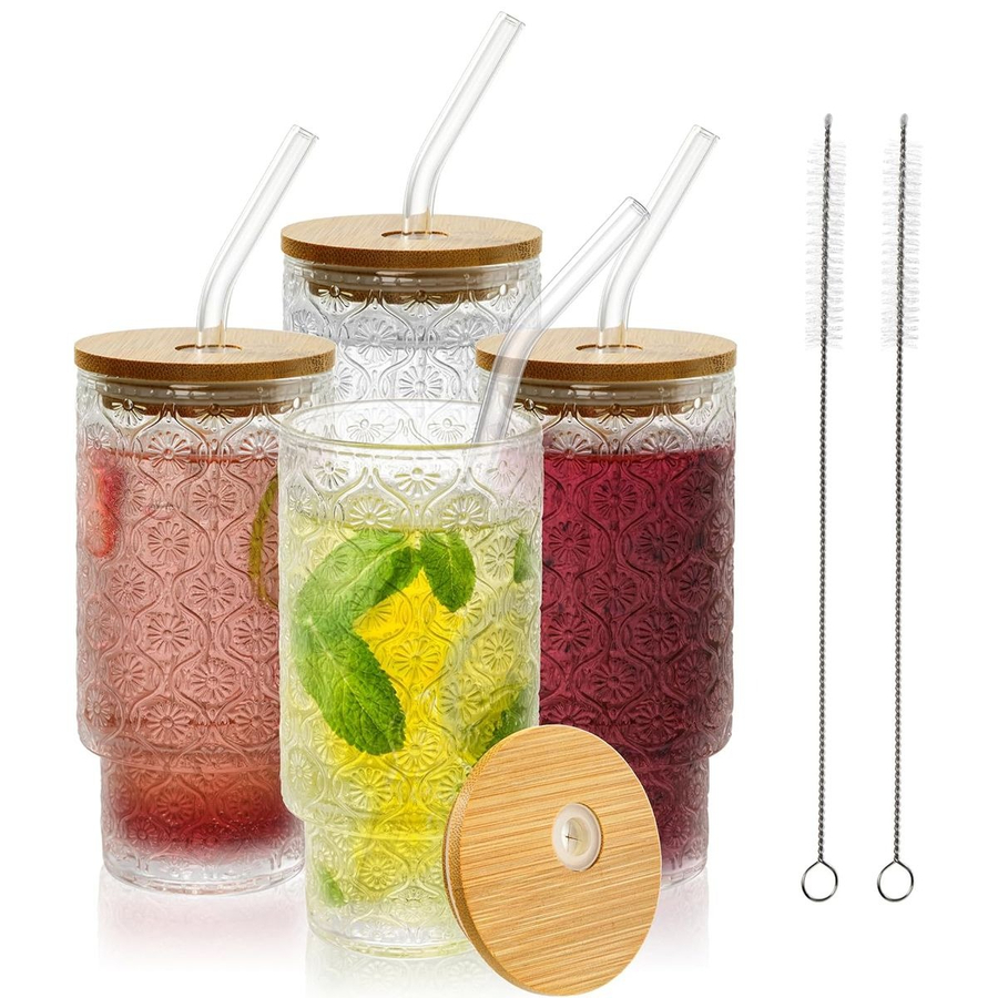 Eco-Friendly & Reusable: Includes glass tumblers with bamboo lids and reusable straws for sustainable everyday use.