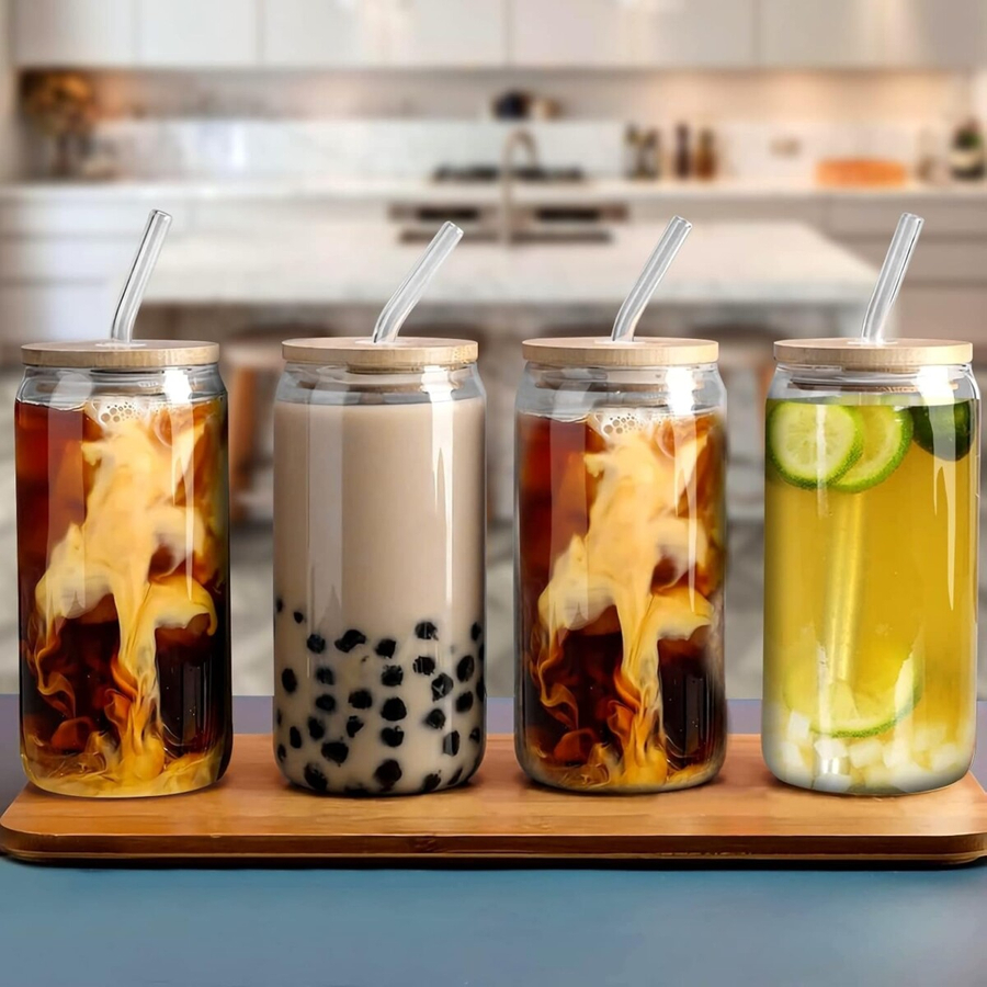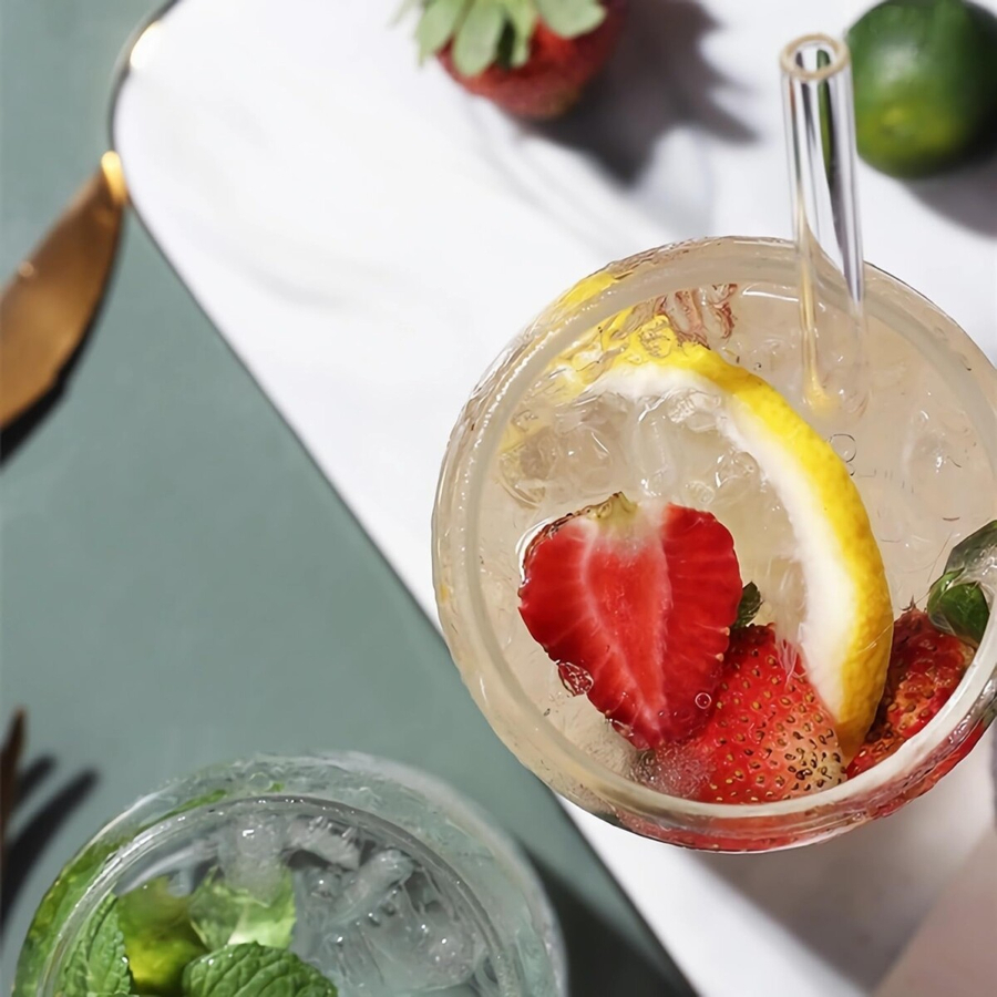 Reusable Glass Straws: Includes glass straws for eco-friendly sipping — perfect for smoothies, iced coffee or juice.
