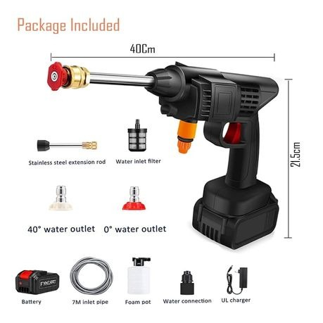 48V High-Performance Motor: Provides strong, consistent water pressure ideal for car washing, outdoor cleaning, and heavy dirt removal.