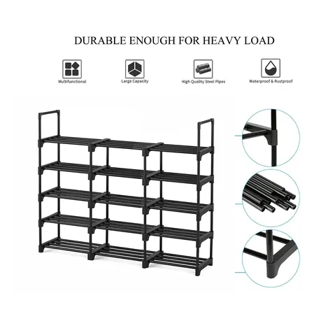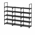This sleek, industrial-style shoe organizer maximizes vertical storage while keeping shoes visible and easily accessible. Lightweight yet robust, it’s easy to assemble, move, and maintain, helping you maintain a tidy and organized home environment.