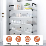 The dustproof shoe rack suitable for the entryway,hallway,living room, bedroom, dormitory, garage and other occasions.The top tier can be used to store bags,key chains, hats and other items