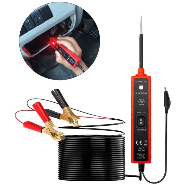 The tester often incorporates safety features such as insulated probes and protective covers. It is designed to be portable and user-friendly. 6-24V DC Electrical Check Lamp Power Circuit Tester With Flashlight