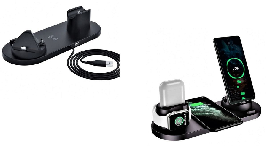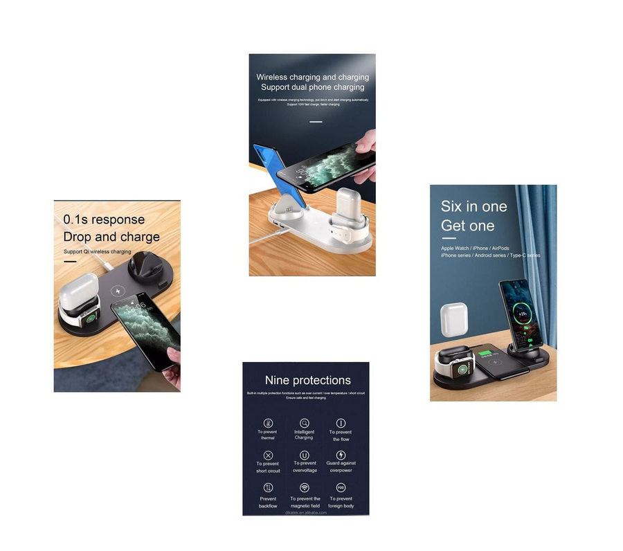New 6 in 1 Multi-function Wireless Charger Stand, Rotatable Wireless Charging Dock for iPhone Micro Type-C Phone Multiple Devices