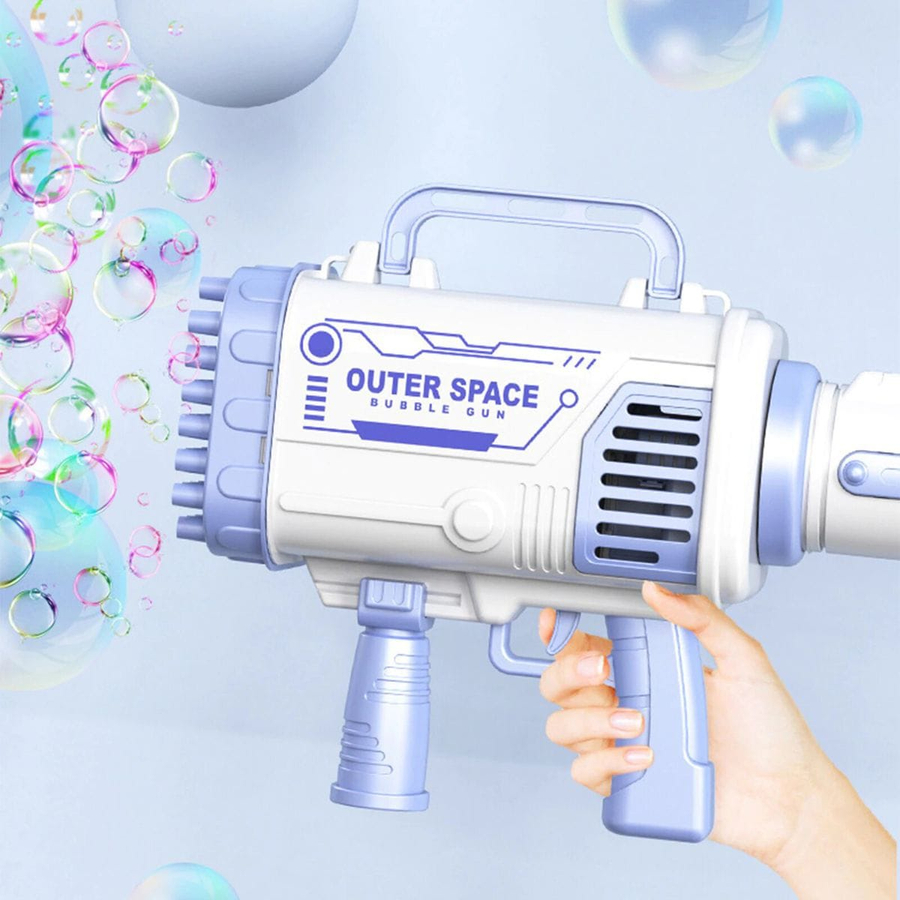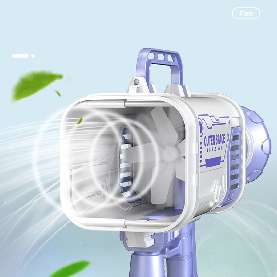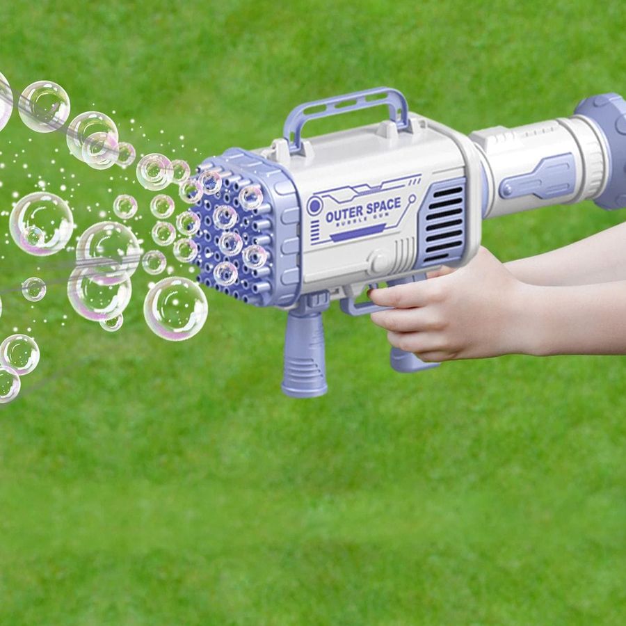 – Turn on the bubble liquid and pull the trigger, 60 bubble holes can blow thousands of bubbles per minute.