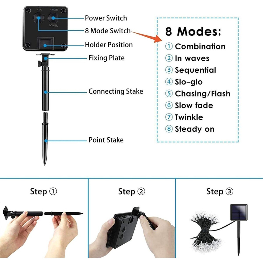 Illuminate your surroundings with the beauty and charm of our 6M Solar Rechargeable Star Fairy Lights. Whether for a garden party, a cozy evening at home, or simply to brighten up your space, these lights are sure to impress!