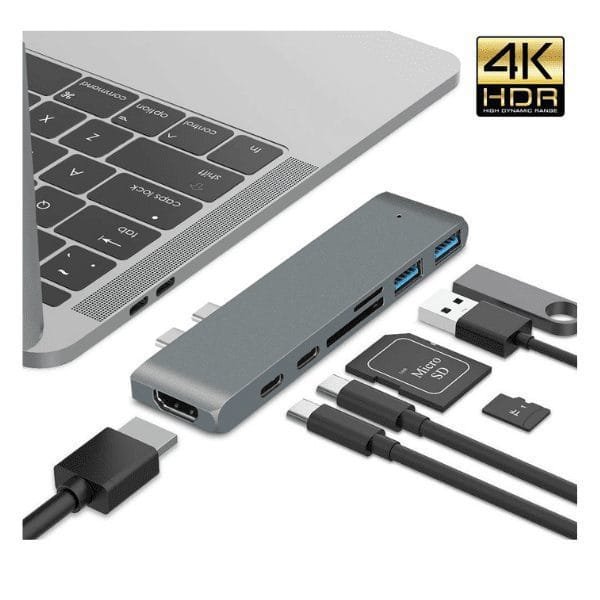 7-in-1 design and large-scale expansion-2 standard USB ports, 5Gbps transmission speed to ensure fast synchronization and file sharing, 1 HDMI port with vivid 4K video output, can transfer media in a few seconds, 1 SD card insertion Slot, provides excellent data storage versatility, USB-C power transmission charging connector allows USB C adapter to connect to any device-C port one h to achieve all possibilities.