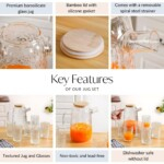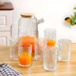 The included glass jug comes with a natural wooden lid that helps keep your beverages fresh and protected, making it perfect for serving water, juice, iced tea, or infused drinks. The matching tumblers are lightweight yet sturdy, ideal for daily hydration or entertaining guests.