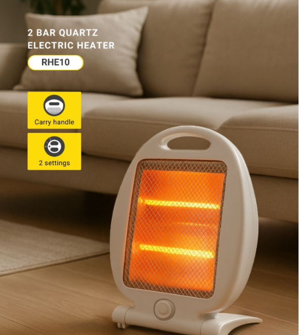 Fight off the cold with the trusted performance of the 2-Bar Quartz Heater – designed to deliver instant warmth exactly where you need it. Featuring 2 powerful quartz heating bars and adjustable settings, this heater is perfect for bedrooms, living rooms, offices, or any small space needing quick, energy-efficient heat.Quartz technology delivers radiant heat that warms people and objects directly – no waiting for the whole room to heat up.Choose between low (400W) and high (800W) heat output to match your comfort level and save energy.Sleek, compact, and easy to move. Place it on a table, desk, or floor for targeted heating anywhere in your home or office.
