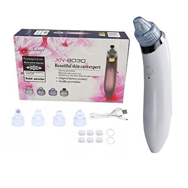 Acne Pore Cleaner Easy Pimple Remover Portable Ultrasonic XN-8030 Electric Blackhead Vacuum Cleaner Cleansing Skin Pore Cleaner XN 8030 Overveiw – Vacuum function cleans dirty pores through suction and increases blood circulation in the skin. – Comes with 4 changeable beauty heads, which can offer different functions and offer a deeper clean for your facial skin. – Levels adjustable suction makes it suitable for different skin. – USB charging, easy, safe and convenient to use. – The strongest suction, suction power is greater than the traditional blackheads suction machine. – The device switches off within 5 minutes after full charging and enter the automatic sleep mode. – Auto protection during short circuit start. – Helps remove the pores, blackheads, wrinkles on your face and keep your skin clean, making skin smooth to be rejuvenated. – Ergonomic design makes it more easy and comfortable to hold. Features: Diamond Skin Peeling The exfoliating tip provides a non-invasive treatment to rub off top skin layer to remove the dead cells. Makes skin smoother, with more refined texture, and firmer by stimulating your nature cell renewal. Face Lifting The vacuum lift system creates a gentle stimulating massaging action, stimulates microcirculation, makes firm skin and tight face. Deep Pore Cleaning Unique small round hole design, could suck acne, blackhead, or dirt inside the pores to deep clean the pores and prevent acne. Wrinkle Removal Unique small elliptical hole design, creates gentle massage and stimulate to the corner of the eyes, nose, mouth, deep influence in the deep skin to remove wrinkles and prevent deep wrinkle. Specification Gentle touch, Deep Cleansing Suction to remove skin impurities, small size better for you carry. Quickly: To restore the skin active without leaving a trace, makes your skin smooth and delicate. Prevent suction damage to the skin, rich in a variety of vitamins and protein brings the skin nutrients needed. Keep your skin clean and look young. High suction: adjustable of the suction strength, effectively to suck out the nose blackhead and acne, get a better effect after using skin toning. Release air pressure and protect your skin from hurting, through times using you will get the nice result. Problems Solved – Thick pores, rough skin, dark skin, exfoliating dead skin, blackheads and skin pores, dirt nose and firmness, improve skin elasticity. 5 Suction Type – Power button can switch five suction strength models to provide suitable and strong suction to meet the needs of different users SIZE: L:22cm H: 15cm W: 6cm Weight:222gms What’s in the box 1 x Beauty Machine XN 8030 4 x Suction Head Isolation Sponges & Rubber Rings 1 x USB Cable 1 x User Manual