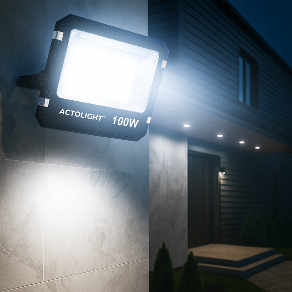 Light up your outdoor space with the Actolight 100W Solar Flood Light, a durable, energy-saving lighting solution built for South African conditions. Powered entirely by the sun, it automatically turns on at dusk and off at dawn — no wiring, no electricity costs.