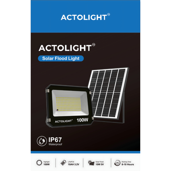 Actolight Premium Solar Rechargeable Flood Light – 100W | IP67 Waterproof