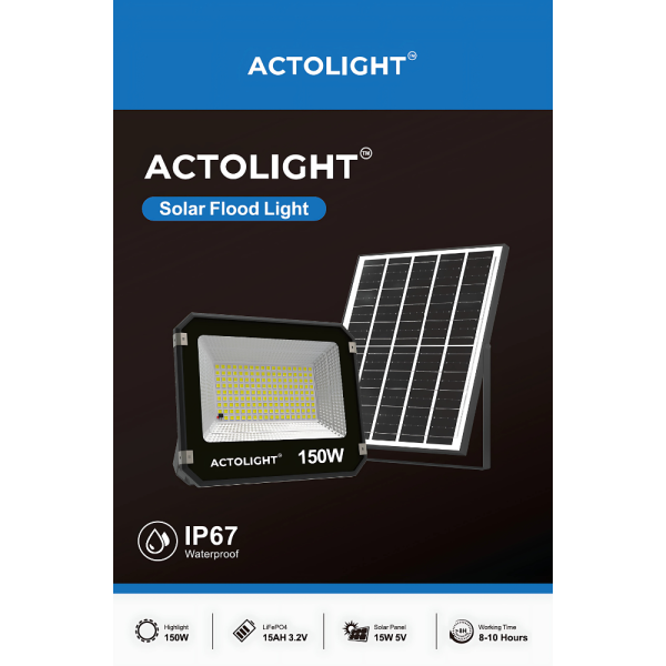 Actolight Premium Solar Rechargeable Flood Light – 150W | IP67 Waterproof