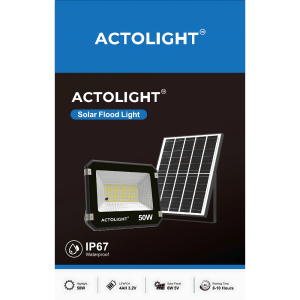 Light up your outdoor space with the Actolight 50W Solar Flood Light, a durable, energy-saving lighting solution built for South African conditions. Powered entirely by the sun, it automatically turns on at dusk and off at dawn — no wiring, no electricity costs.