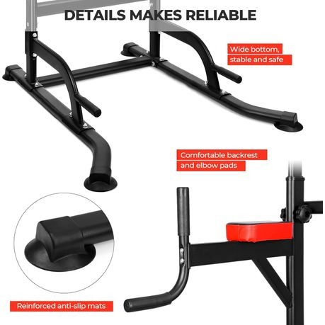 All-In-One Design: Supports pull-ups, dips, push-ups, leg raises, and bench press exercises for total-body training.