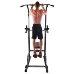 Adjustable All-In-One Pull-Up Bar Tower Dip Station With Foldable Bench Bar