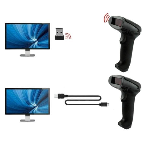 Barcode Reader 2-In-1 with dual functionality namely usable in both wireless function by USB adapter included and is always provided USB cable in the package in case of dead batteries, which ensures fast and accurate reading, Can be used in a wide range of applications for reading barcode products via the push of the button. Great for reading documents and control of stock. The width of the line reading increases as the scanner departs from the barcodes. In addition, the pulse laser beam facilitates the alignment of the barcode and when the scanner detects a bar code the laser beam automatically switches to read mode.