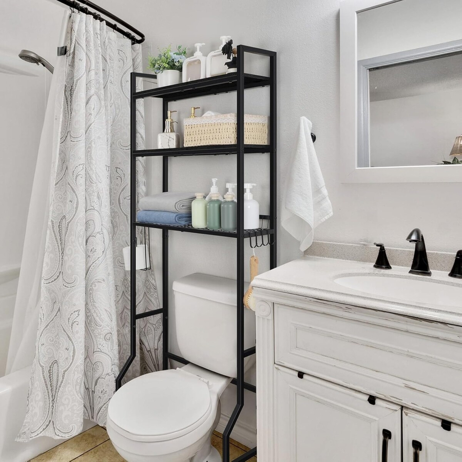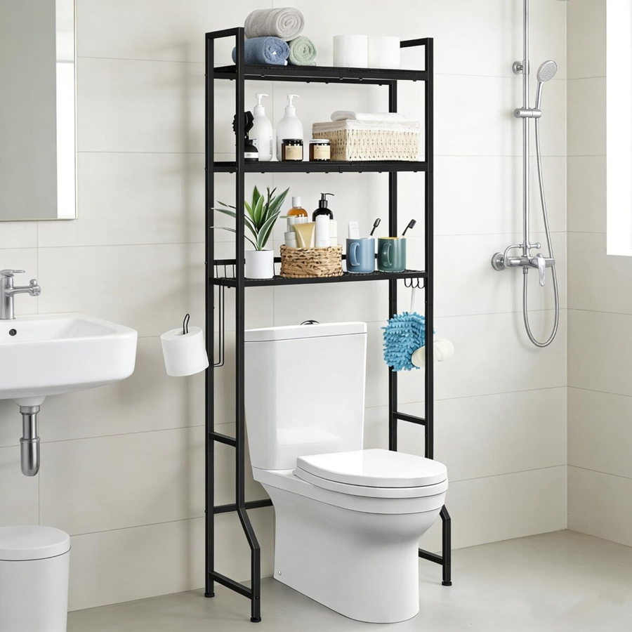Maximize your bathroom space with this Over-The-Toilet Storage Shelf, designed to fit seamlessly above most standard toilets. This space-saving organizer offers multiple tiers for storing toiletries, towels, toilet paper, cleaning supplies, décor, and more. Made with a durable metal frame and stable base, it provides practical and stylish vertical storage without taking up extra floor space. Perfect for small bathrooms, apartments, guest bathrooms, and en-suites.