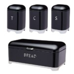 The Versatile Kitchen Storage Set adds both style and functionality to your kitchen space. Comprising matching tea, coffee, and sugar canisters along with a spacious bread bin, this set is thoughtfully designed to meet your daily storage needs. With a polished steel construction, these containers not only offer robust durability but also elevate the visual appeal of your countertop. Let this coordinated set make your kitchen organization more streamlined, all while maintaining a clean and modern aesthetic.