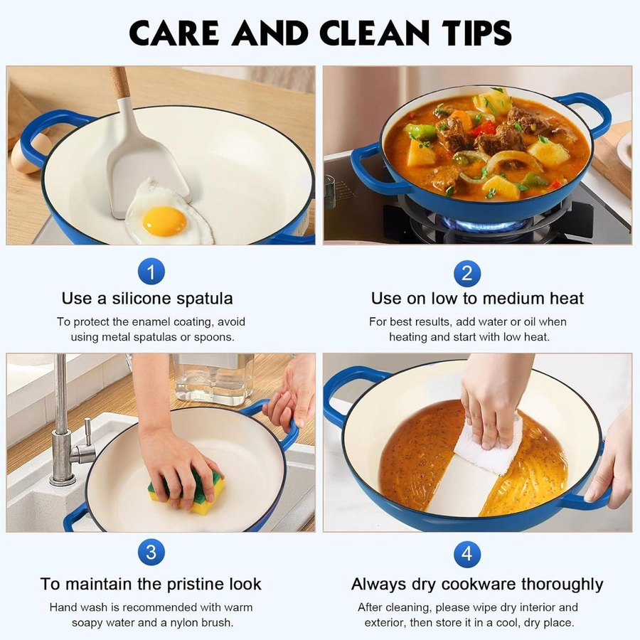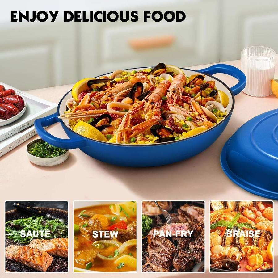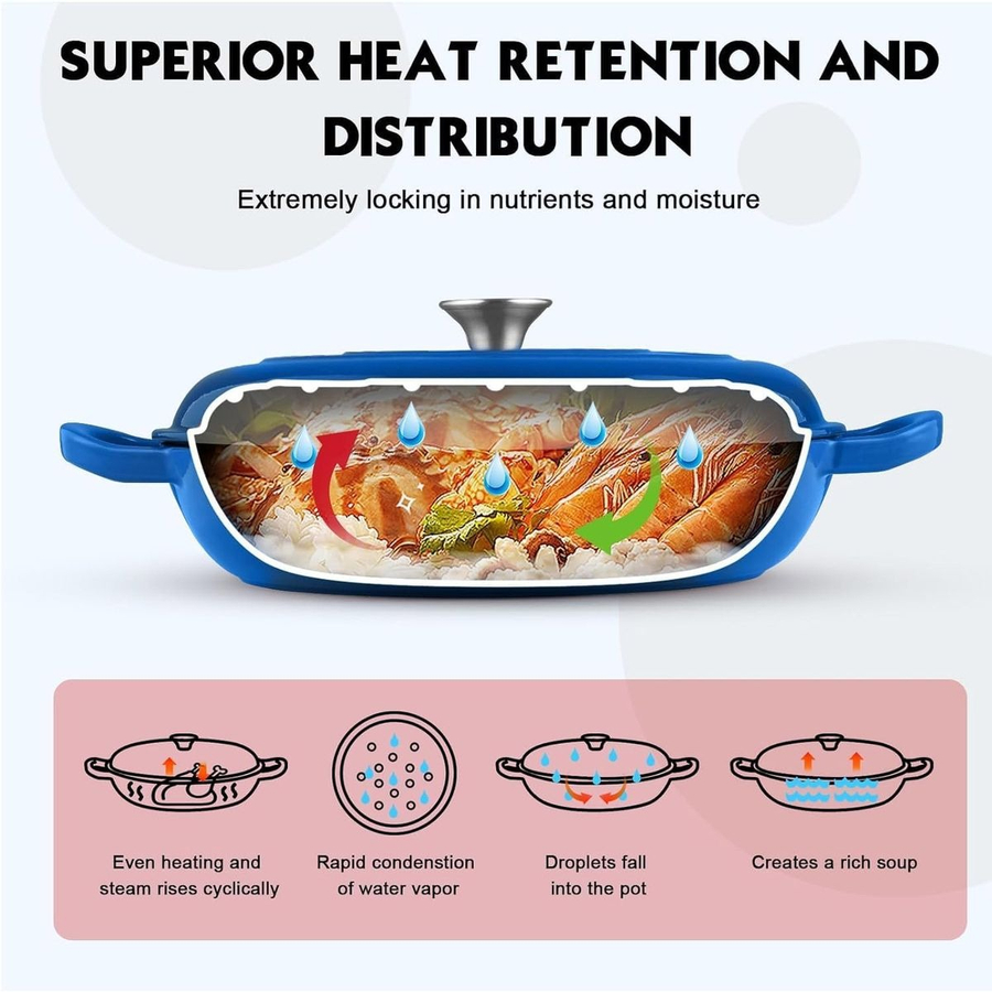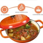 • Enameled Cast Iron Construction: Durable and rust-resistant with excellent heat retention.