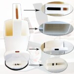 Vertical design optimizes countertop space while maintaining easy accessibility.
