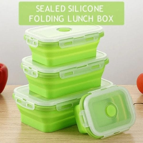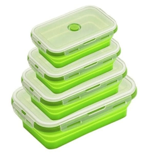 Collapsible Silicone Food Storage Container – Set of Four – Green