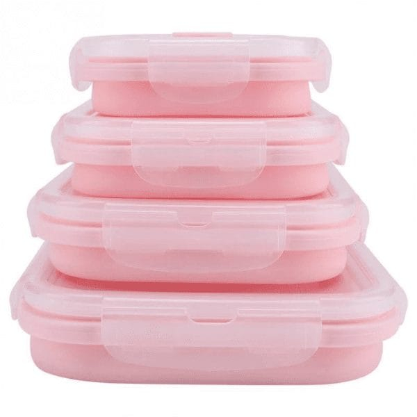 Collapsible Silicone Food Storage Container – Set of Four – Pink