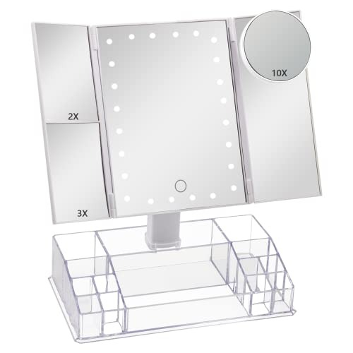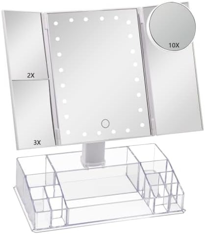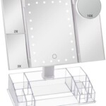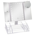 With attached storage makeup organizer.