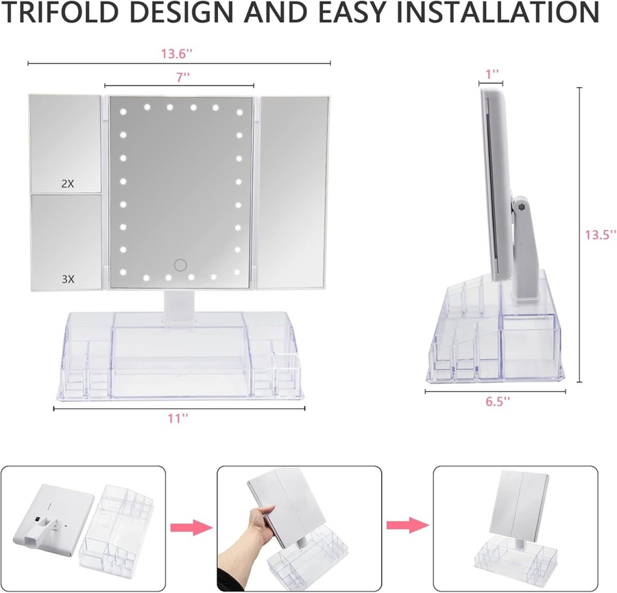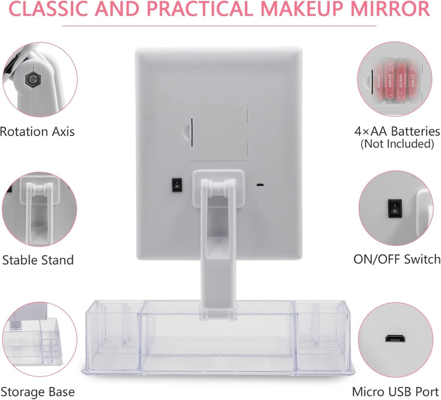 The lighted vanity makeup mirror is made from extra thicken ABS plastic with UV coating, nice looking and resistance to scratch, chemicals, heat, fingerprints It’s a portable bathroom and makeup accessory that is light enough to carry through your home for dependable use.