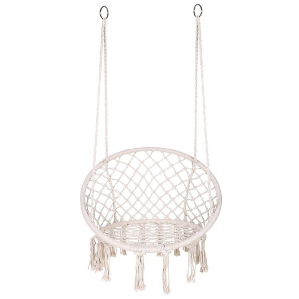 -SAFE & STURDY : Firmly woven Thick cotton rope and excellent metal frame make the swing chair sturdy and support up to 130 kilograms, suitable for adults and children