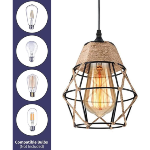 -D15cm Cage Guard Pendant Lamp Shade, rounded with Hemp rope. This Lampshade perfectly blends modern geometric design with traditional candlelight design.