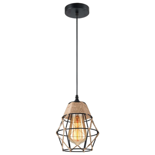-D15cm Cage Guard Pendant Lamp Shade, rounded with Hemp rope. This Lampshade perfectly blends modern geometric design with traditional candlelight design.